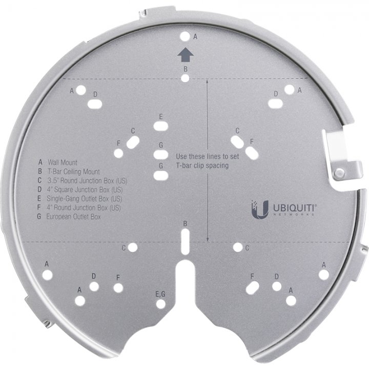 Ubiquiti UniFi Professional Mounting SystemКрепление Ubiquiti UniFi Professional Mounting System для установки точек доступа UniFi в различных условиях — подходит даже для монтажа на планки подвесного потолка и подрозетники. Совместима с UAP-AC-PRO, UAP-AC-HD, UAP-AC-SHD и более поздними моделями.