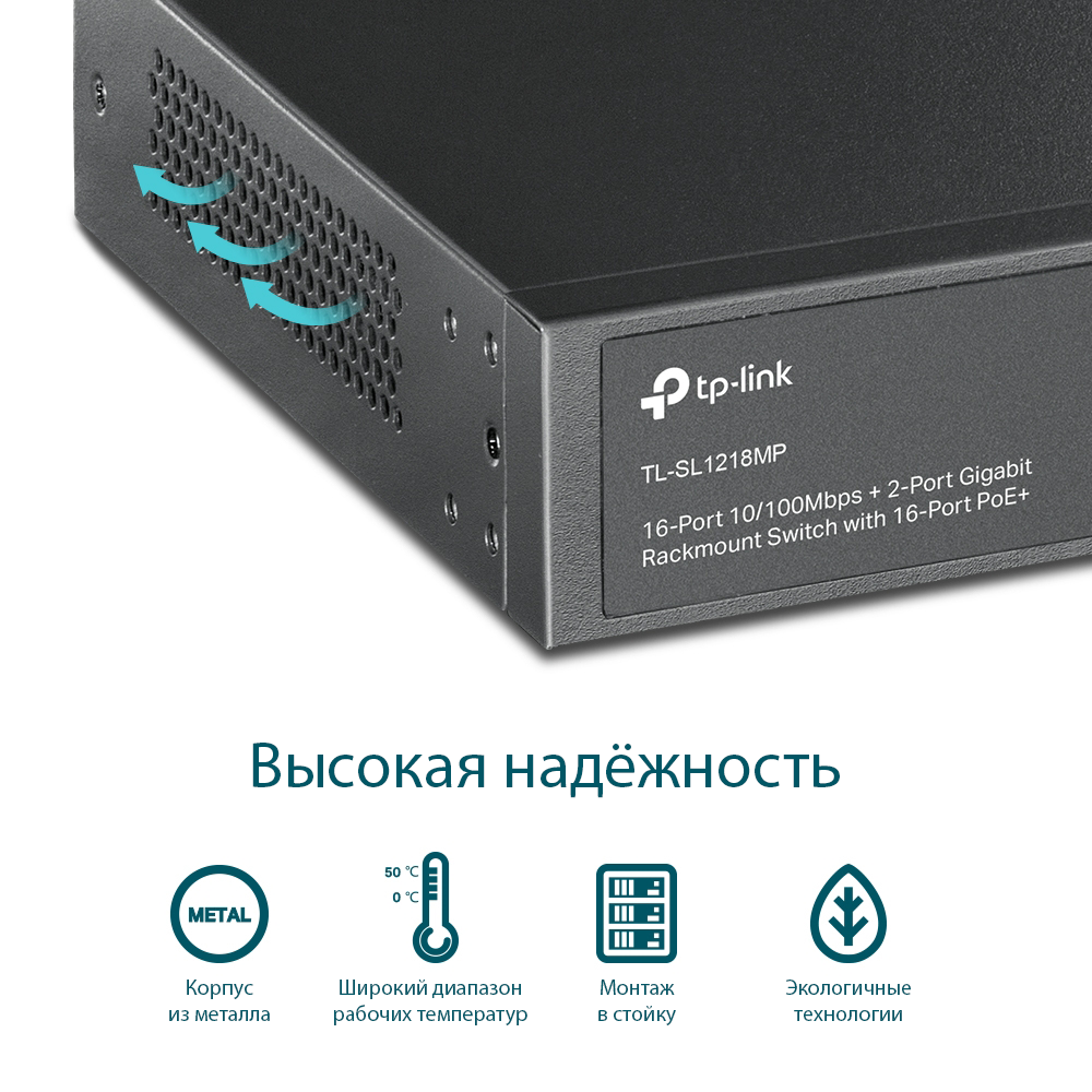 TP-Link TL-SL1218MP полностью совместим с IP‑камерами, точками доступа, IP‑телефонами, компьютерами, принтерами и не только.