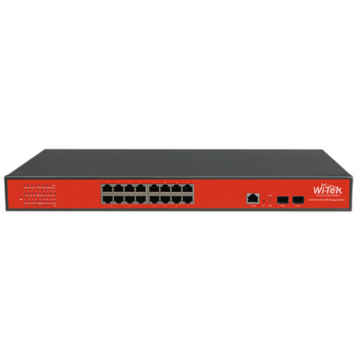 Коммутатор Wi-Tek WI-PMS318GF, 16 Eth 10/100/1000, 2 SFP, 802.3af/at PoE out, порты PoE out 16