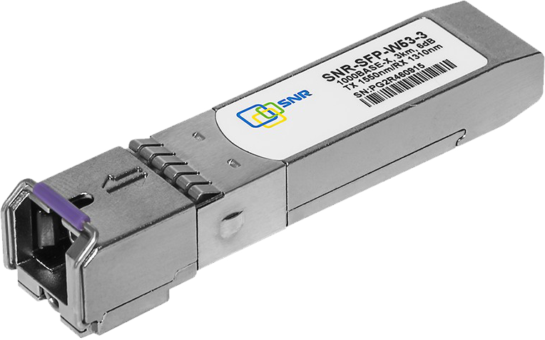 Модуль SFP SNR SNR-SFP-W53-3, 3 км, 1 Гбит/с, SM, длина волны Tx 1550 нм, Rx 1310 нм
