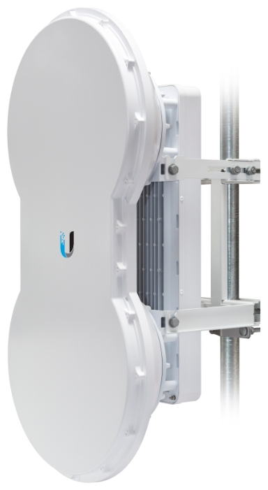 Радиомост Ubiquiti AirFiber 5U работает в частотном диапазоне 5 ГГц. Имеет на борту один порт Ethernet 10/100/1000 и один порт 10/100 для управления, а также антенну с кроссполяризацией и усилением 23dBi. Ширина луча 6 градусов. В комплекте поставляется инжектор питания PoE и полный набор креплений на мачту.